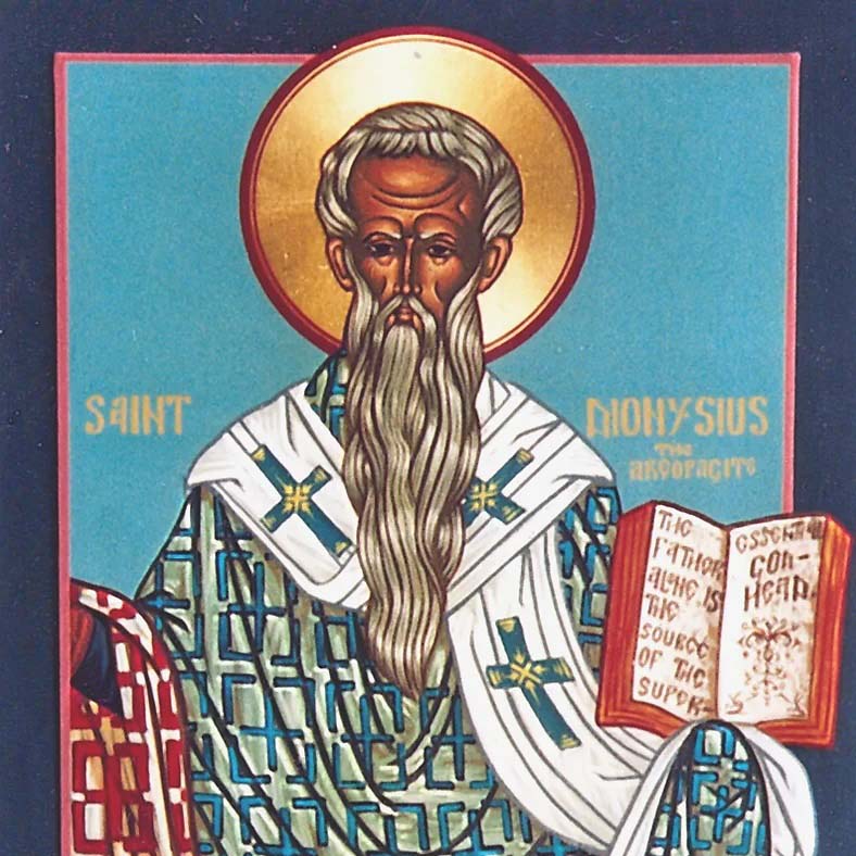 Sveti Dionzije Aeropagit (Dionýsios ho Areopagítes), pravnik, učenik apostola Pavla, prvi atenski biskup, živio je i djelovao u I. stoljeću. Bio je sudac, član aeropaga, vijeća u antičkoj Ateni, nazvanog po brežuljku Areopagu, zapadno od Akropole.
