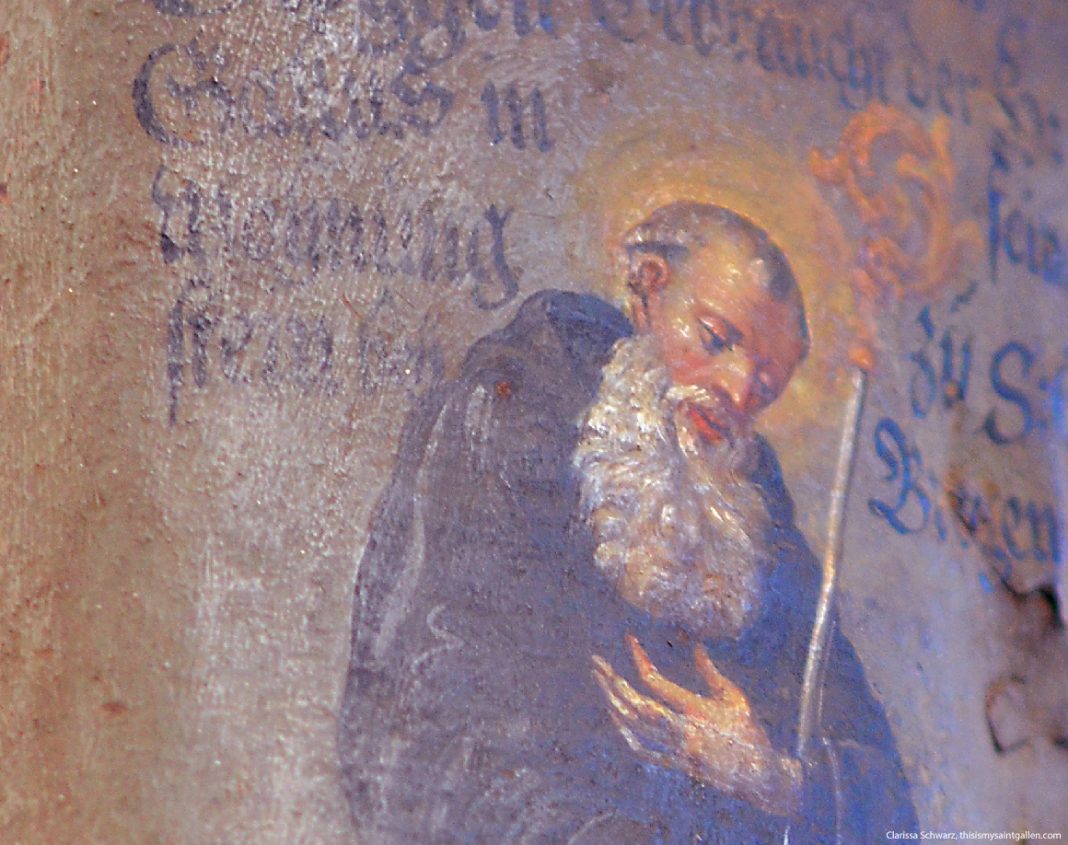 Redovnik i svećenik, mlađi brat svetog Deicolusa, učenik svetog Comgalla i svetog Kolumbana, odgojen je u opatiji Bangor (grofovija Down). Vrsni poznavatelj Svetog pisma, bio je oko 590. jedan od dvanaestorice pratitelja svetog Kolumbana na njegovom misionarskom putovanju po Franačkom carstvu, gdje je sveti Kolumban utemeljio nekoliko samostana, među njima i opatiju Luxeuil. Misionari su 610. protjerani iz Burgundije, pa su se posvetili evangelizaciji alemanskih naselja na Bodenskom jezeru.
