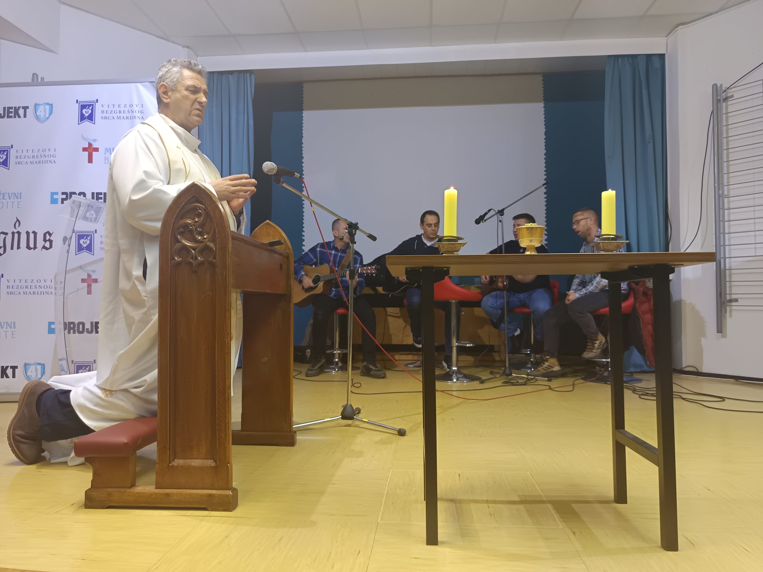 Duhovni program se nastavio u obližnjoj dvorani pokreta fokolara slavljenjem i nagovorom preč. Miličevića o Gospi i o važnosti posvete njezinom Bezgrešnom Srcu, nakon čega je uslijedila posveta svih sudionika Bezgrešnom Srcu Marijinu.