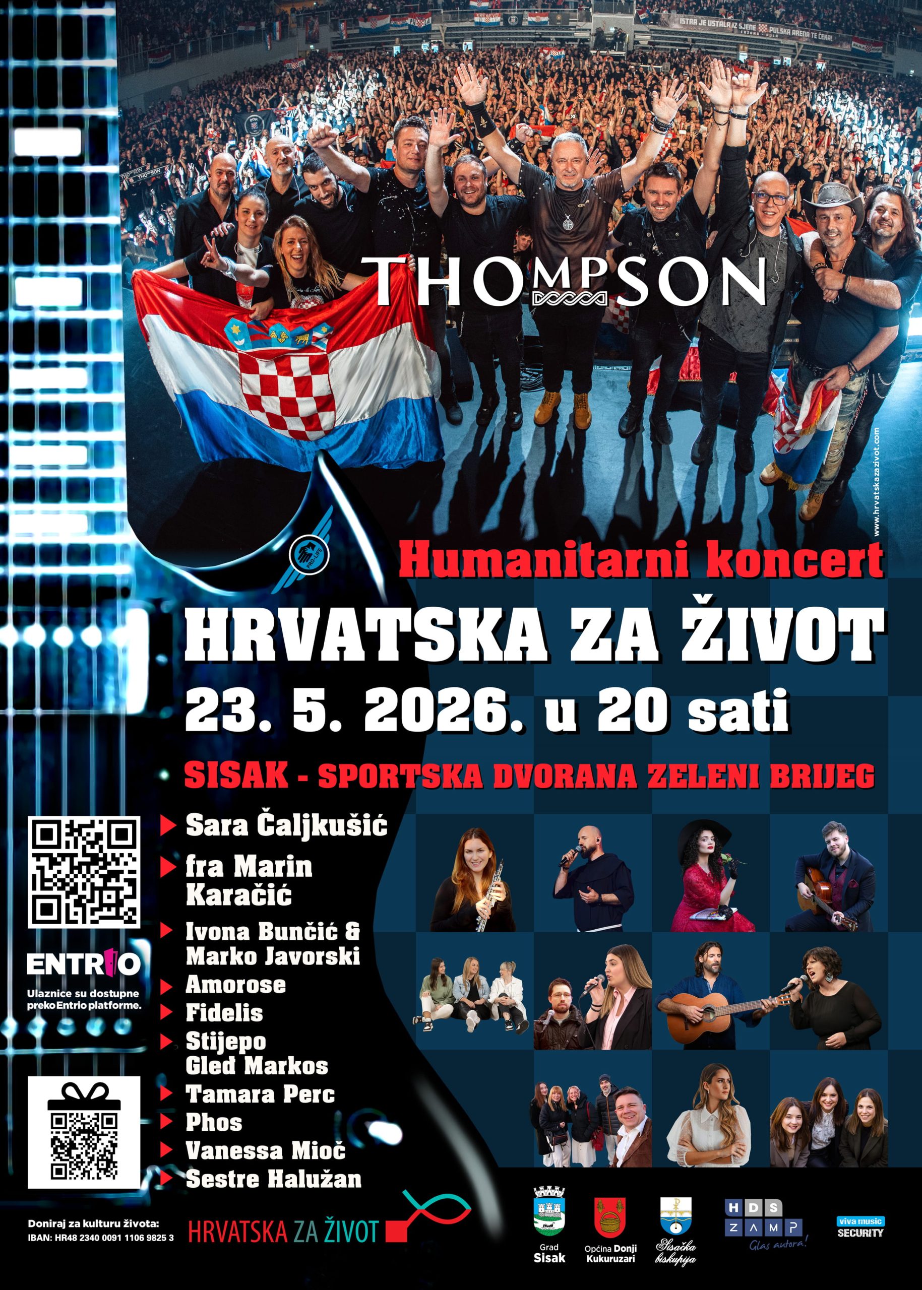Udruga “Hrvatska za Život” organizira humanitarni koncert HRVATSKA ZA ŽIVOT koji će se održati 23. svibnja u 20:00 sati u Sportskoj dvorani Zeleni brijeg u Sisku.
